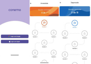 O CONEMO é um app de celular que propõe técnicas baseadas na terapia cognitivo-comportamental (TCC) para reduzir sintomas de ansiedade e depressão. A ferramenta oferece jornadas interativas organizadas em sessões com vídeos e estratégias que sugerem atividades prazerosas, dicas e práticas para a promoção da saúde e do bem-estar.
